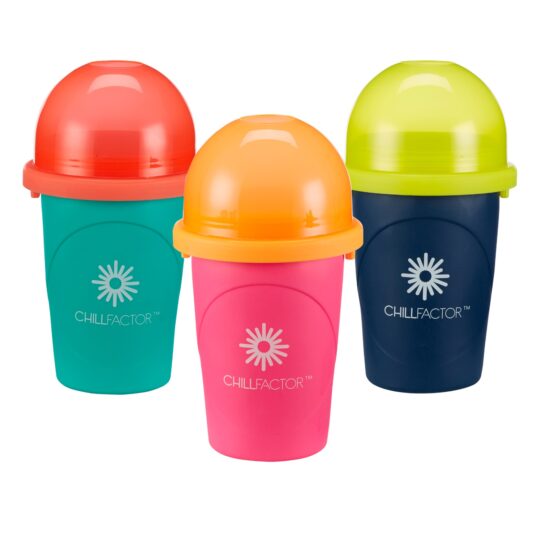 Deze koele bekers zijn verkrijgbaar in 3 frisse kleuren: een neon roze beker met oranje deksel, een neon groene beker met rode deksel en een donkerblauwe beker met neon gele deksel. De bekers zijn ook nog eens herbruikbaar. Was hem na elk gebruik af met warm water en zeep. Stop hem daarna weer in de vriezer zodat je de volgende keer weer razendsnel slushy’s kunt maken. Bevries, vul, knijp en smullen maar.