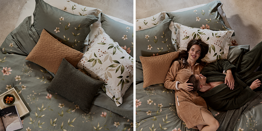 Groen is in 2026 dé verbindende kleur tussen binnen en buiten. Vooral zachte, kruidige groentinten creëren een rustgevende, natuurlijke sfeer. Het dekbedovertrek FLEURINE in de tint Thyme is hier een prachtig voorbeeld van.