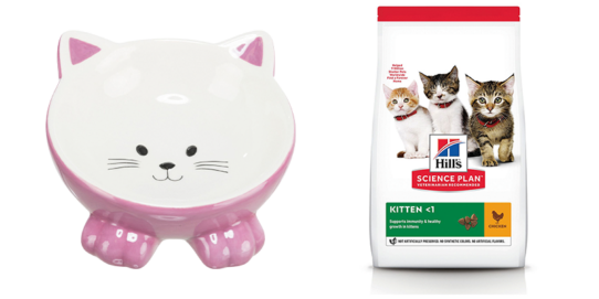 Deze schattige kattenvoer- en waterbak shop je al voor € 7,99. Geef ze om de weerstand te ondersteunen ook van Hill’s Science Plan Kitten.
