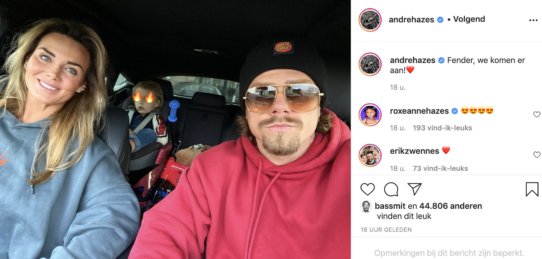 ‘Fender, we komen er aan!’, schrijft André bij een leuke auto-selfie. De neefjes kunnen het heel goed vinden samen en hebben samen de grootste lol.