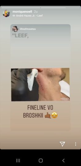 Op de Instagramstory van Monique zien we dat André opnieuw een tattoo heeft laten zetten! Ook dit keer pronkt Monique haar naam in de nek van André.
