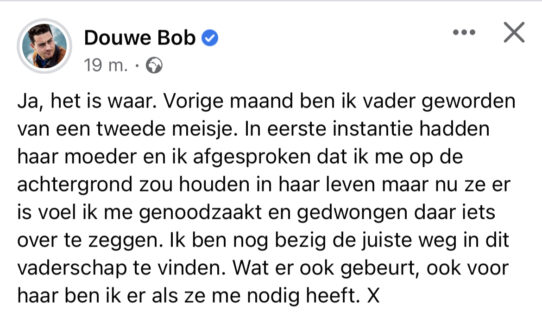 Douwe schrijft: ‘Ja het is waar. Vorige maand ben ik vader geworden van een tweede meisje.’