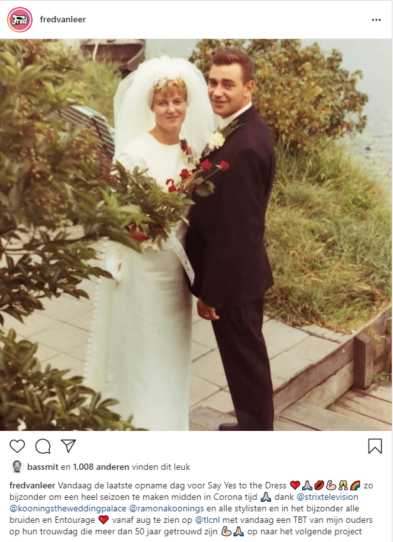 Op Instagram deelt Fred een huwelijksfoto van zijn vader en moeder die vandaag meer dan 50 jaar getrouwd zijn. Fred lijkt zowel op zijn vader als zijn moeder! Ook zijn volgers vinden dat Fred enorm veel lijkt op zijn vader en moeder. Een volger reageert ‘Wat lijk je op beide je ouders’ en een ander zegt weer ‘Wat zien je ouders er prachtig uit.’
