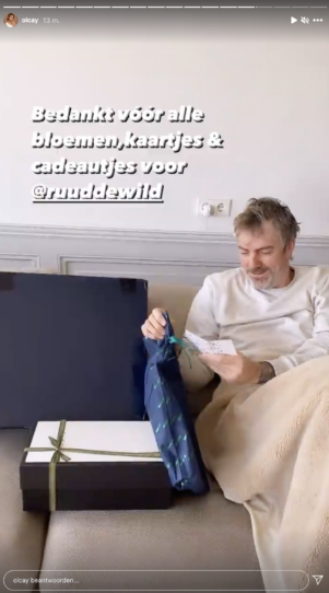 ‘Yes!!!! Ruud de Wild komt thuis!!! Snel racen’, schrijft Olcay bij een foto waar het geluk van af straalt! Niet lang daarna deelt Olcay verschillende video’s van een hele vrolijke Ruud, die allemaal cadeautjes en kaartjes uitpakt.