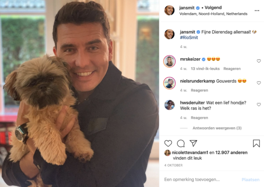 Op Dierendag deelde Jan ook al een foto met zijn trouwe viervoeter. Hij wenste iedereen fijne dierendag en maakte een foto waarop hij zijn hondje Rio stevig knuffelt. Wij zijn verliefd op Rio!
