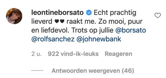 ‘Echt prachtig lieverd, raakt me. Zo mooi, puur en liefdevol. Trots op jullie.’
