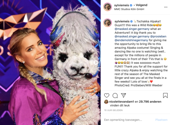 Het is iedere week een gigantische kijkcijferhit: The Masked Singer. Niet alleen in Nederland is het programma razend populair, maar daarbuiten ook! In de Duitse versie moest gisteren de Alpaca het programma verlaten toen bleek dat Sylvie Meis in het pak zat!