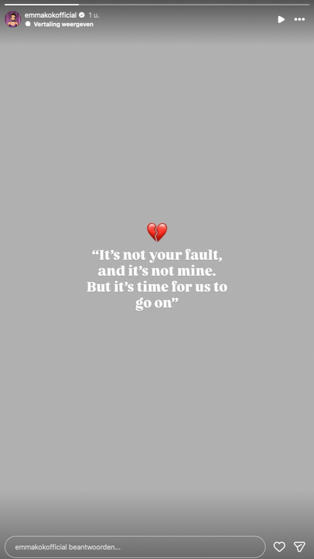 ‘Het is niet jouw schuld en ook niet de mijne. Maar het is tijd voor ons om verder te gaan’, schrijft Emma.