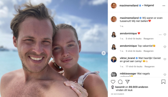 Maxime beantwoordt via haar Instagram een aantal prangende vragen van haar volgers. Zo vraagt ook een van haar volgers hoe het stel elkaar heeft ontmoet. “We hebben elkaar ontmoet op 2 maart, op het chateau”, begint Maxime haar verhaal. “Vervolgens gingen we daten. Ik moest hem wel een beetje pushen, hoor. Maar het is goed gekomen. Hij zit naast me op de bank!” “Jackpot”, vult Leroy aan.