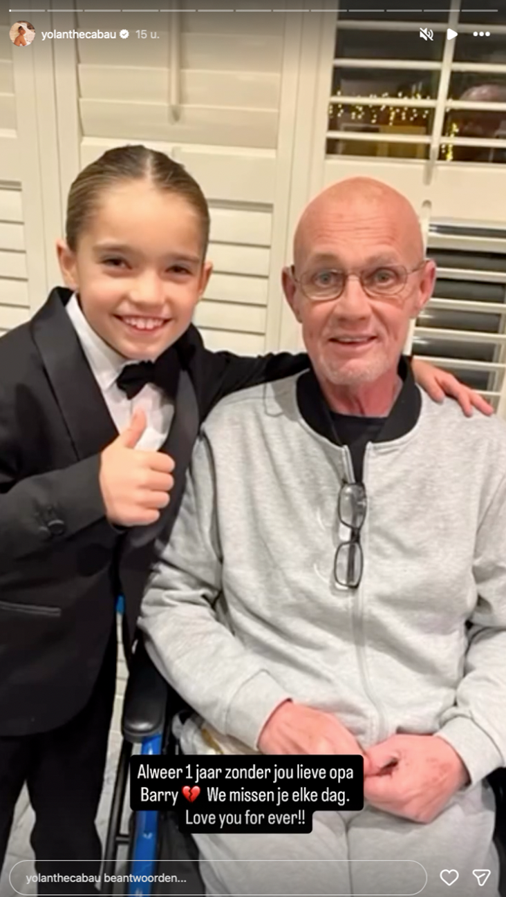 Het is een jaar geleden dat de vader van Wesley en Rodney Sneijder, Barry, overleed aan de gevolgen van kanker. Barry was de ex-schoonvader van Yolanthe en de opa van haar zoon Xess Xava, met wie ze nog altijd een goede band hadden. Op Instagram deelt Yolanthe ontroerende beelden van mooie momenten met Barry en Xess Xava.